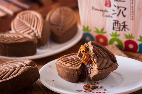 沉香葉茶製成的酥脆餅皮,台灣本土產的土鳳梨餡兒,回甘茶香和酸甜鳳梨味的新奇結合。